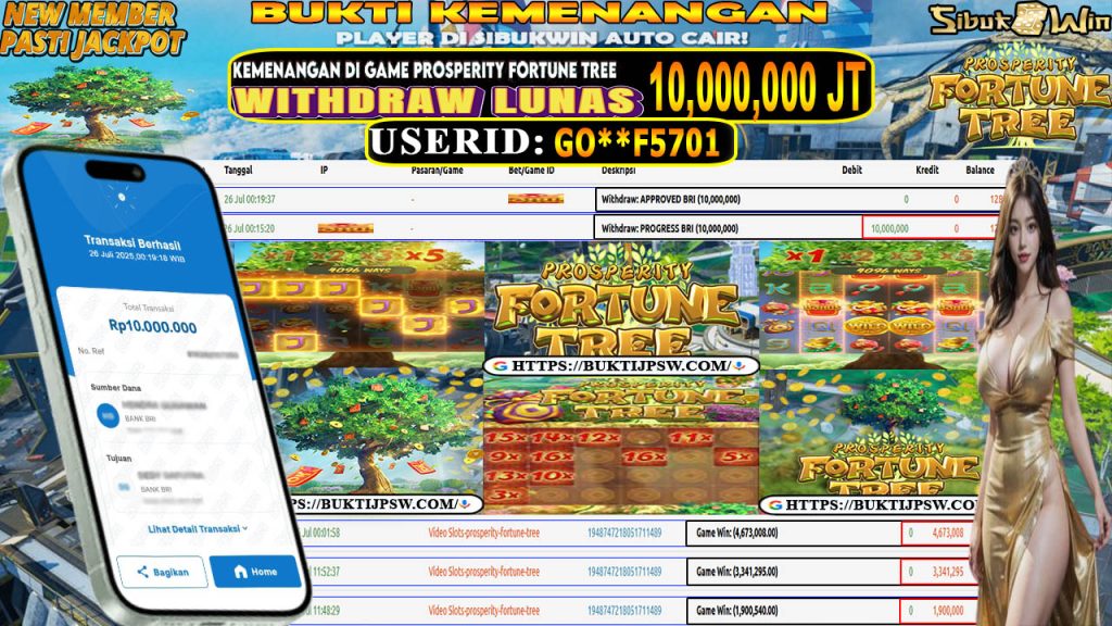 Bukti Kemenangan 26 JULI 2025 DI GAME Prosperity Fortune Tree WD 10 Juta