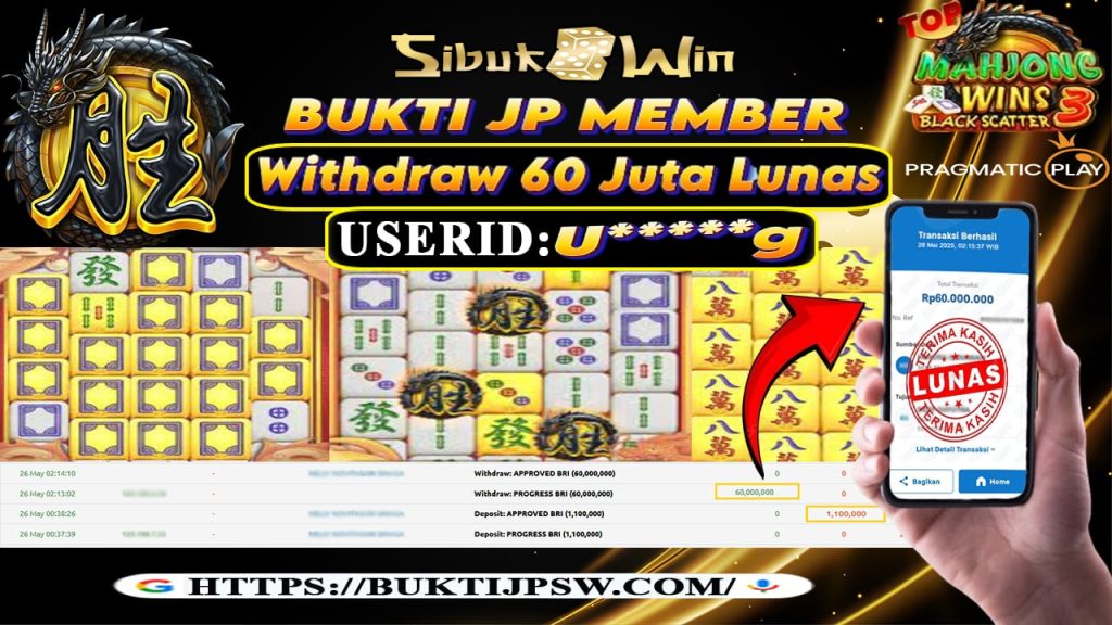 Bukti Kemenangan 26 Mei 2025 Di Game Mahjong Wins 3 – Black Scatter 1000 WD 60 Juta