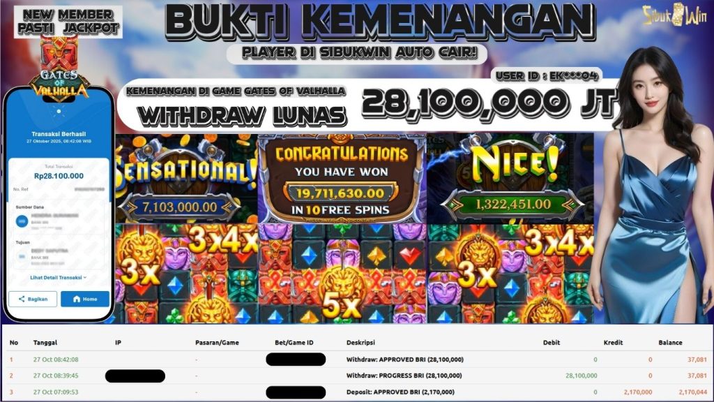 BUKTI KEMENANGAN 27 October 2025 DI GAME GATES OF VALHALLA 28,1 JUTA