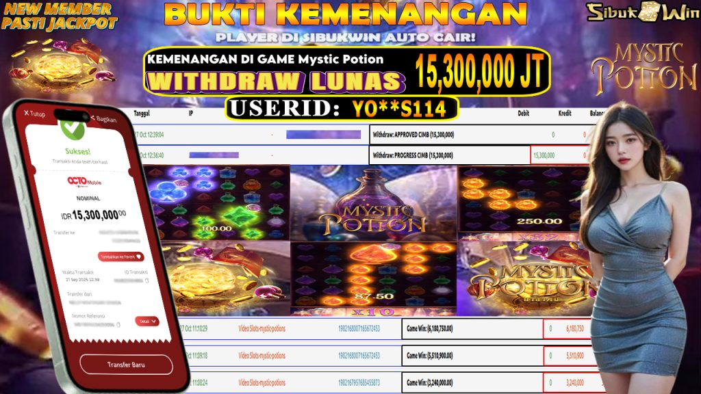 BUKTI KEMENANGAN 27 October 2025 DI GAME Mystic Potion 15,3 JUTA