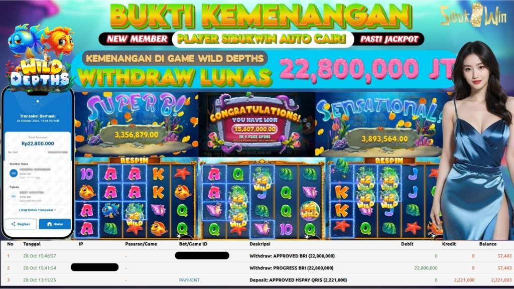 BUKTI KEMENANGAN 28 October 2025 DI GAME Wild Depths 22,8 JUTA