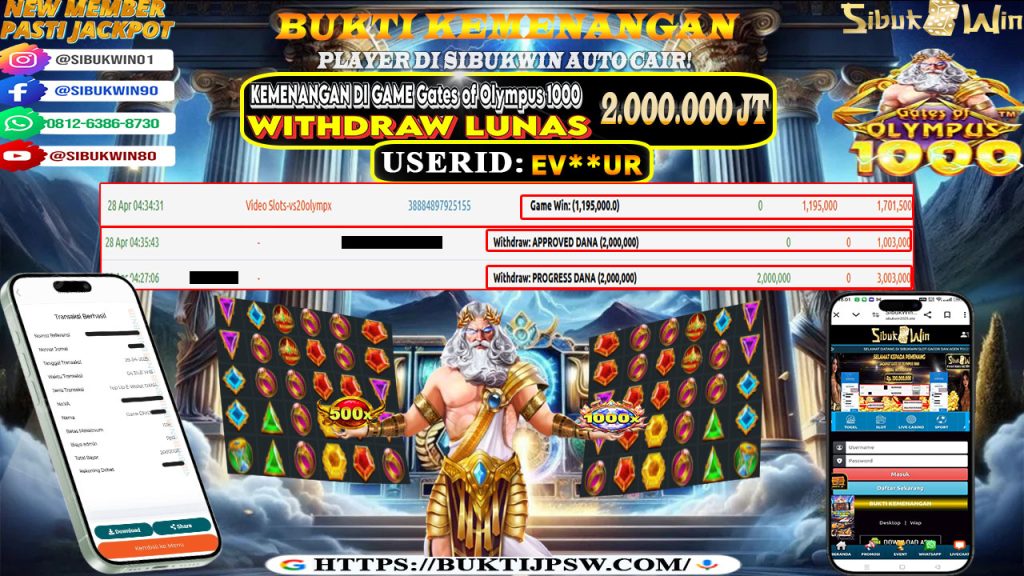 Bukti Kemenangan 28 April 2025 Di Game Gates of Olympus 1000 WD 2 Juta