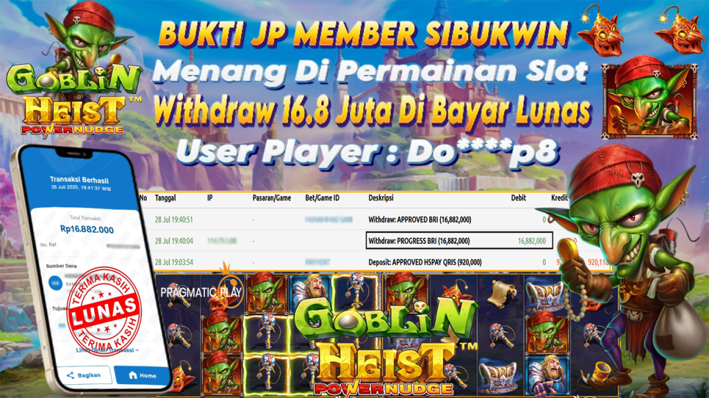 Bukti Kemenangan 28 Juli 2025 Di Game Goblin Heist Powernudge WD 16.8 Juta