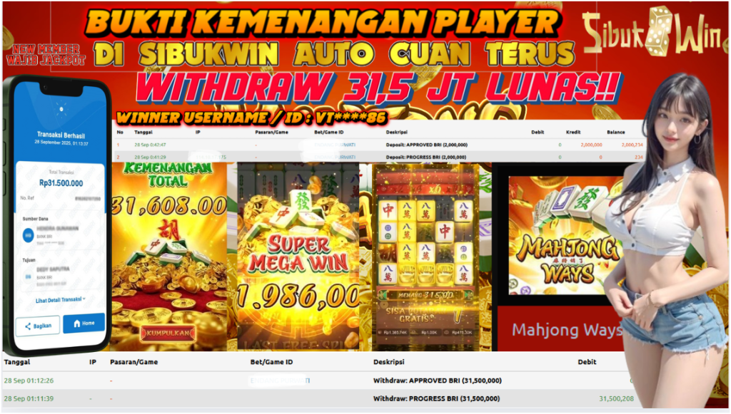 BUKTI KEMENANGAN 28 SEPTEMBER 2025 DI GAME MAHJONG WAYS 31,5 JUTA