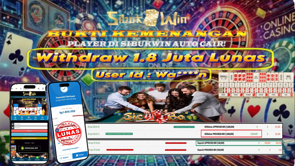 Bukti Kemenangan 29 April 2025 Di Game Mega Sicbo WD 1.8 Juta