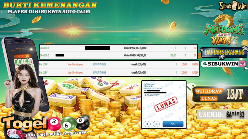 Bukti Kemenangan 29 Maret 2025 Di Game Mahjong Ways 2 WD 13 Juta