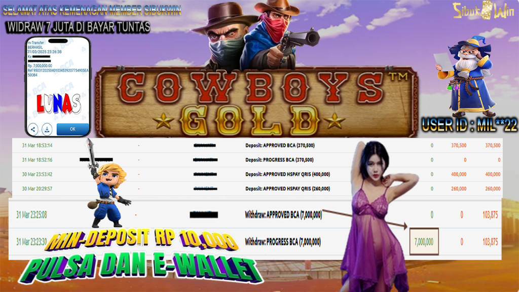 Bukti Kemenangan 31 Maret 2025 Di Game Cow Boys Gold WD 7 Juta