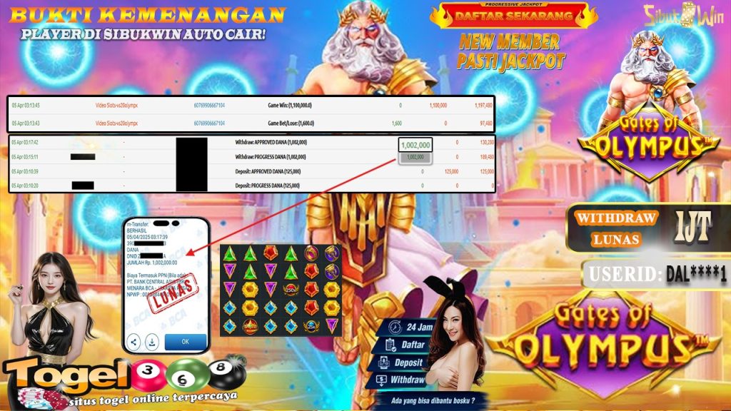 Bukti Kemenangan 05 April 2025 Di Game Gates Of Olympus 1000 WD 1 Juta