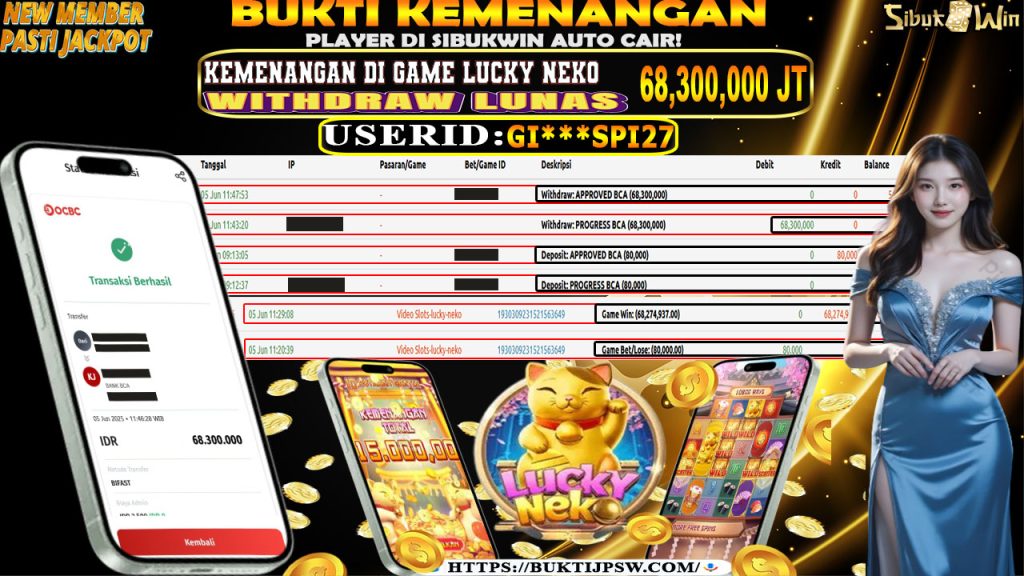 Bukti Kemenangan 5 JUNI 2025 Di GAME lucky Neko WD 68,3 Juta