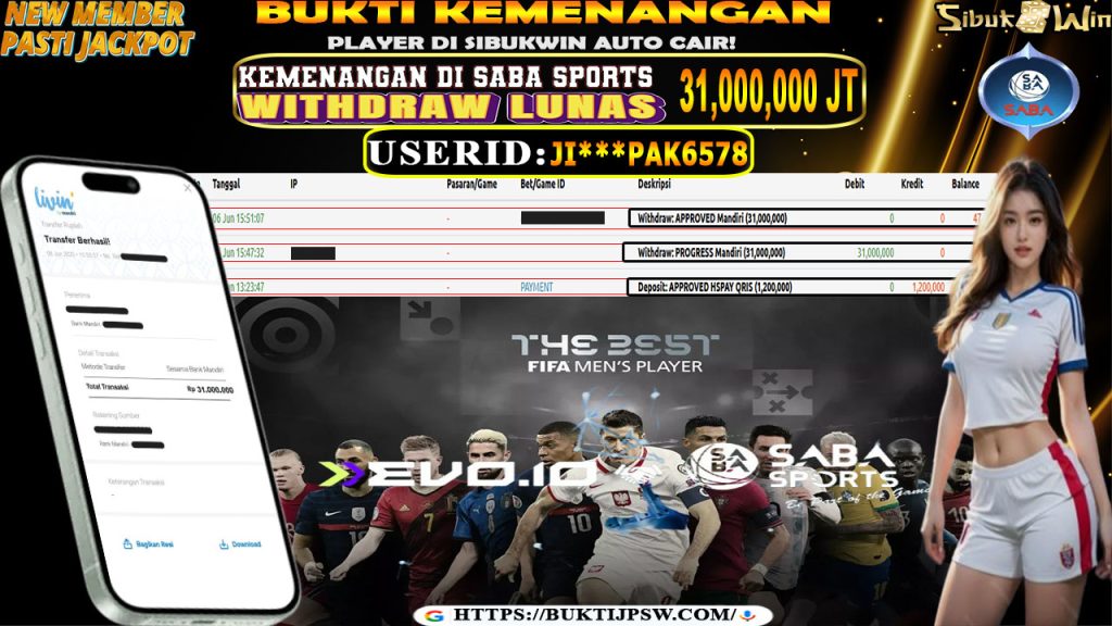 Bukti Kemenangan 6 JUNI 2025 Di Saba Sports WD 31 Juta