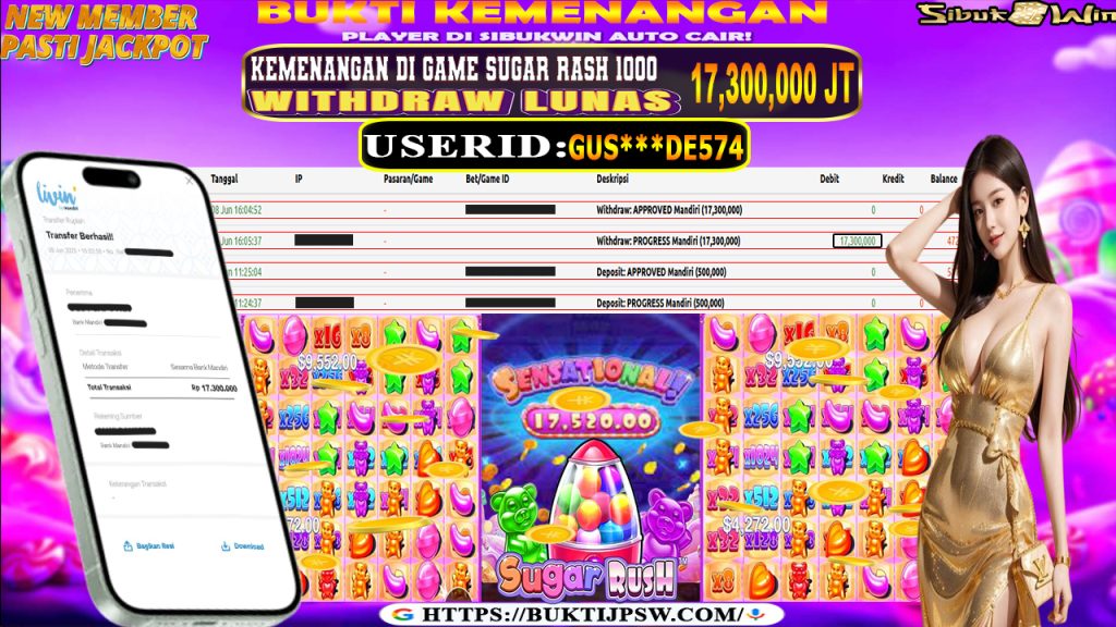 Bukti Kemenangan 8 JUNI 2025 Di Game Sugar Rush 1000 17,3 Juta