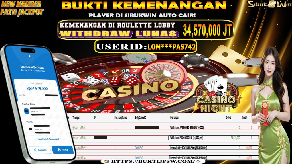 Bukti Kemenangan 9 JUNI 2025 Di Roulette Lobby 34,5 Juta